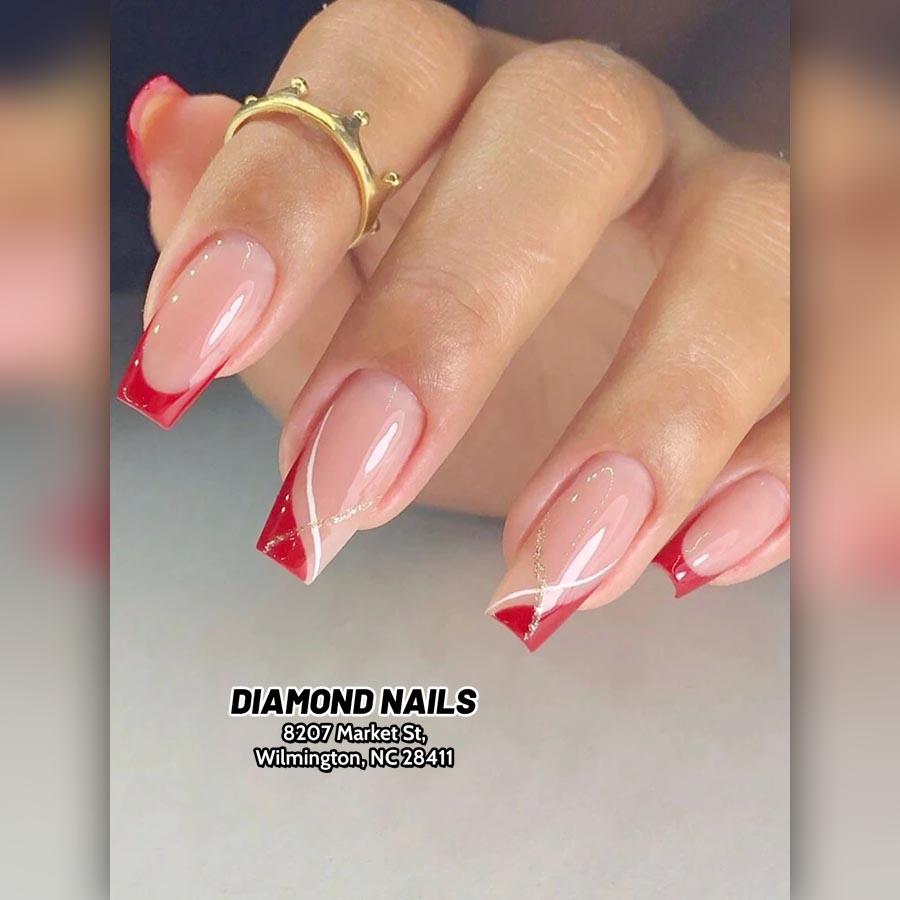 Our salon - Diamond Nails in Wilmington, NC 28411 offers a wide range of nail design options, including intricate nail art, beautiful patterns, and dazzling embellishments. Whether you are attending a special event like a wedding or simply want to add a touch of glamour to your daily life, our nail designs are perfect for any occasion. Our talented technicians stay up-to-date with the latest trends and techniques to ensure that you receive a unique and fashionable nail design that sets you apart from the crowd.